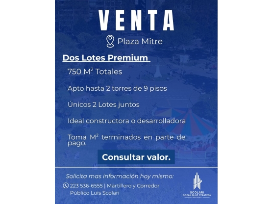 - Apto hasta 2 torres de 9 pisos cada una. Una torre al frente y una torre al contra frente abierto.